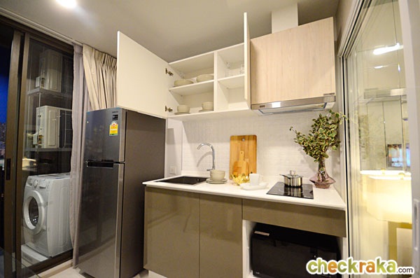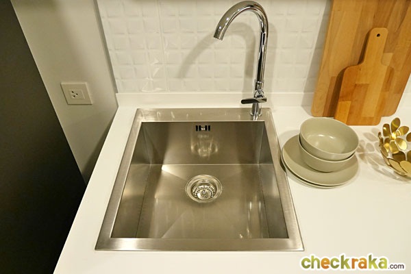 ได้เตาไฟฟ้า เครื่องดูดควัน และอ่างล้างจานเหมือนกับห้องที่แล้ว แต่ได้พื้นที่สำหรับเก็บของเพิ่มมากขึ้น