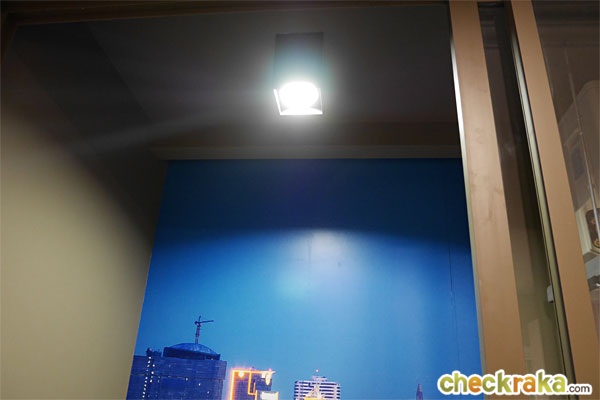 ฝั่งตรงข้ามเป็นทีวีแบบติดผนัง ทำให้เหลือพื้นที่สำหรับเดินกว้างมาขึ้นไปอีก ระยะดูทีวีประมาณ 2.8 เมตร