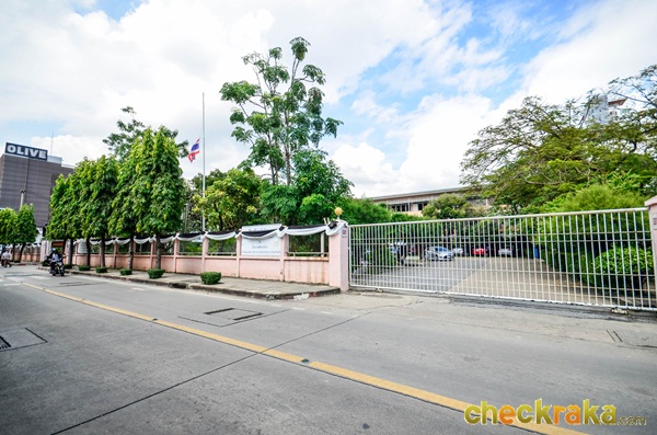 โดยระยะห่างจากตัวตึกมายังกำแพงโดยรอบโครงการอย่างต่ำประมาณ 3 เมตร พร้อมต้นไม้ล้อมรอบ
