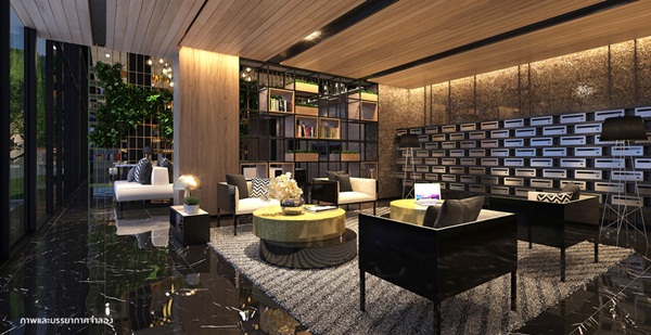 Boutique Lobby & Multipurpose แบบ Double Volume ความสูงประมาณ 5 เมตร มองออกมาเป็นวิวสวน พร้อมมี Wi-Fi