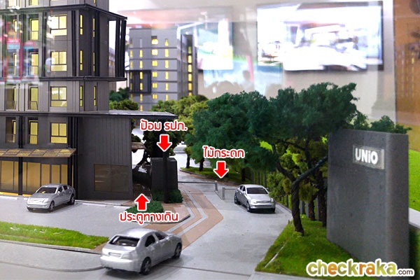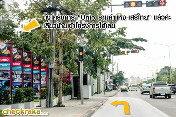 เริ่มต้นที่ด้านหน้าโครงการ "ยูนิโอ รามคำแหง - เสรีไทย" กันเลยค่ะ