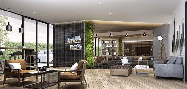 ล็อบบี้แยกแต่ละอาคาร ตู้จดหมายแยกแต่ละอาคาร ห้องซักรีด เข้า-ออกระบบ Key Card Access กล้องวงจรปิด (CCTV) ตลอด 24 ชั่วโมง พนักงานรักษาความปลอดภัยตลอด 24 ชม. มี Wifi ที่บริเวณ Lobby Shop ร้านค้าบริเวณหน้าโครงการ 3 ร้าน ลิฟต์โดยสารอาคารละ 2 ตัว พื้นที่จอดรถอยู่ที่บริเวณชั้น 1 ของทุกอาคาร รวมทั้งโครงการประมาณ 30% หรือ 209 คัน แบบไม่รวมจอดซ้อนคัน ภาพจำลองบรรยากาศภายใน Lobby ใต้อาคาร A