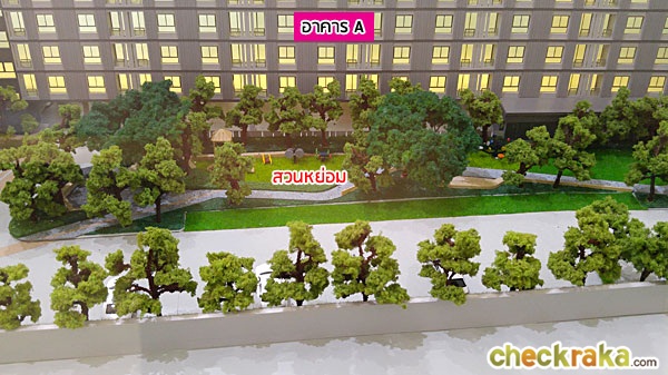 ทิศตะวันตกของอาคาร A จะเป็นสวนหย่อม หรือสวนส่วนกลางของโครงการ วางแนวยาวขนานกับอาคาร A