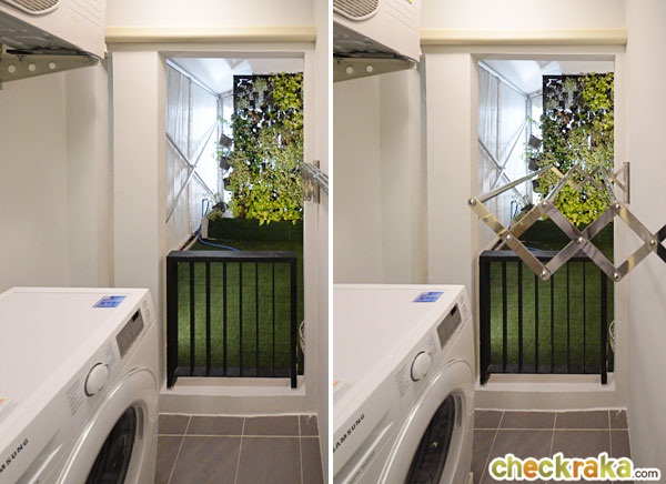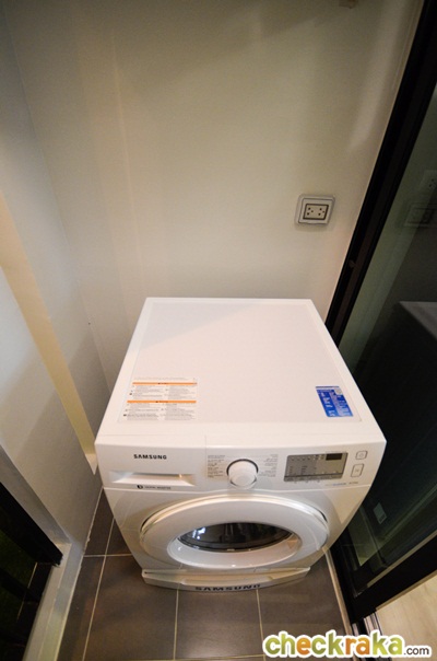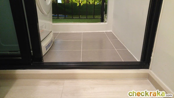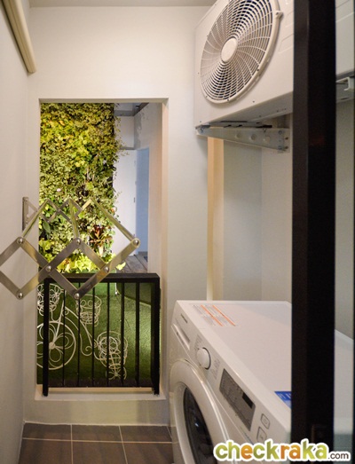 เปิดระเบียงออกมาตำแหน่งเครื่องซักผ้า และคอมเพรสเซอร์แอร์จะอยู่ทางขวา