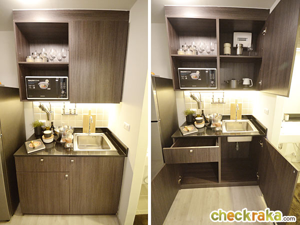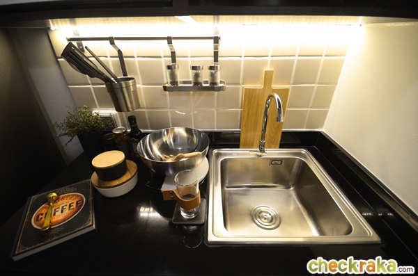 เคาน์เตอร์ครัวได้เหมือนกันกับห้องที่แล้ว แต่ห้องนี้อ่างล้างจานจะย้ายมาอยู่ทางขวามือ