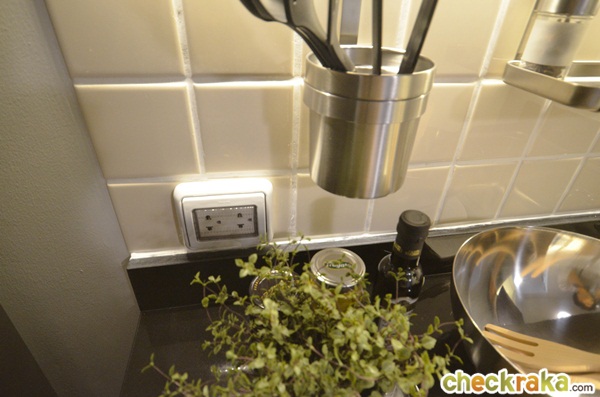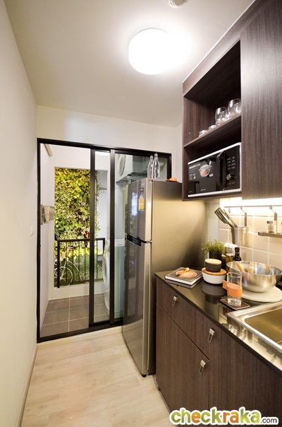 เป็นครัวแบบเปิดไม่มีประตูกั้นให้เช่นกัน แต่ถ้าชอบทำครัวหนักๆ ติดประตูเพิ่มเองก็น่าจะดี