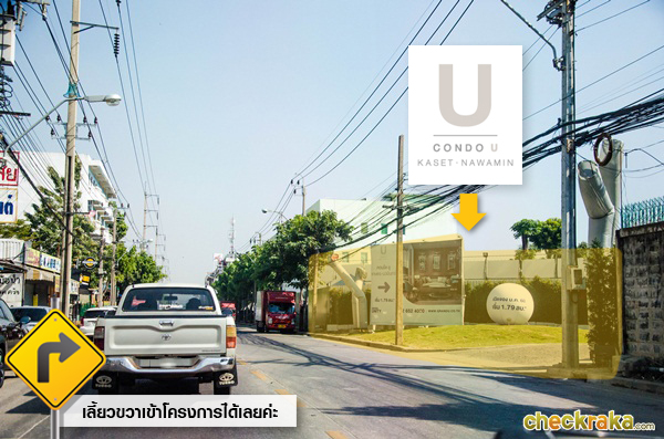 เลยจากปั๊มแก๊สมา 100 ม. ถึงโครงการคอนโด ยู เกษตร - นวมินทร์แล้วค่ะ