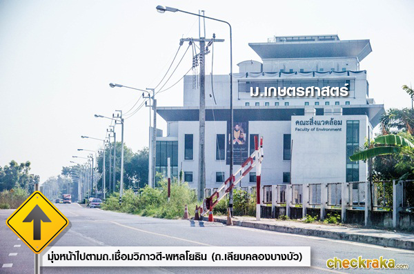 - ขาเข้าโครงการเส้นทางที่ 1 จากถนนวิภาวดีรังสิต เลี้ยวเข้าถนนเลียบคลองบางบัว
