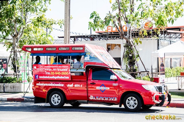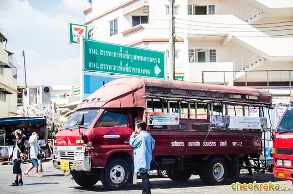 มีรถสองแถวสีแดง วิ่งตามเส้นทางถนนลาดปลาเค้าค่ะ