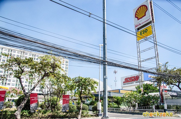 ผ่านเซ็นทรัลรามอินทรามานิดหน่อย มีปั๊มเชลล์อยู่หน้าลุมพินีคอนโด