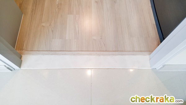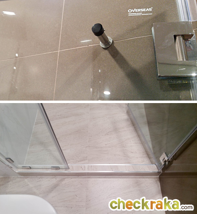 ด้านหลังประตูติดตัวกันกระแทกมาให้ ส่วนธรณีกั้นระหว่างส่วนเปียกกับส่วนแห้งในห้องน้ำเป็นกระเบื้องป้องกันน้ำไหลออกมาด้านนอก ข้อดีคือมีอายุการใช้งานที่ยาวนานกว่าลามิเนตหมดปัญหาเรื่องการบวมน้ำติดขอบอลูมิเนียมมาให้เช่นกัน