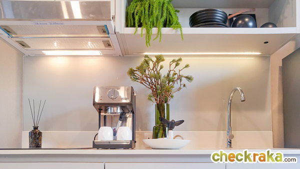 ด้านบนติดไฟมาให้บริเวณเคาน์เตอร์ครัวด้วย ช่วยเพิ่มความสว่างเวลาที่ทำอาหารจะได้มองเห็นได้ง่ายขึ้น