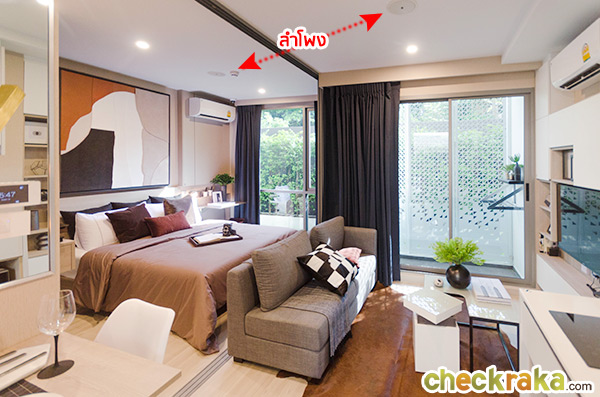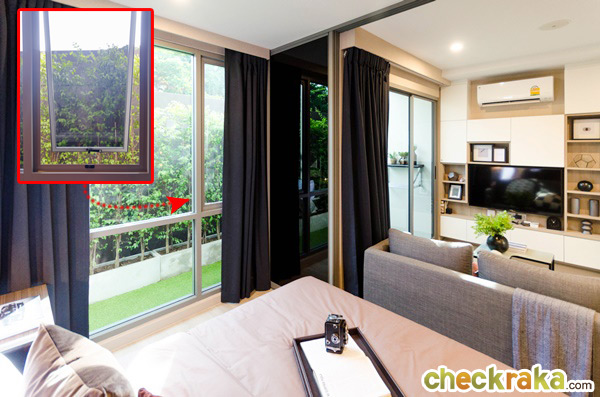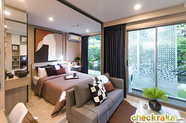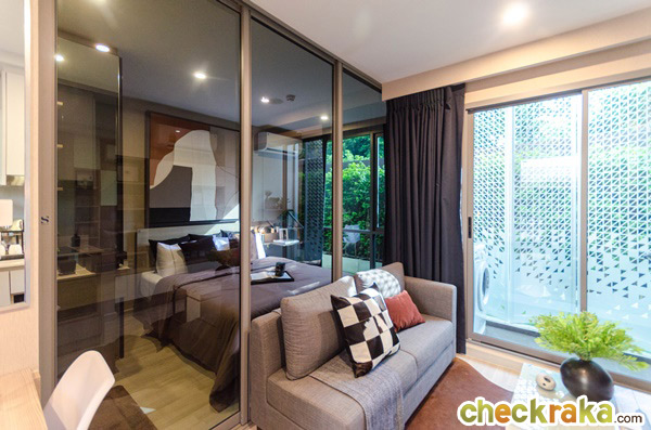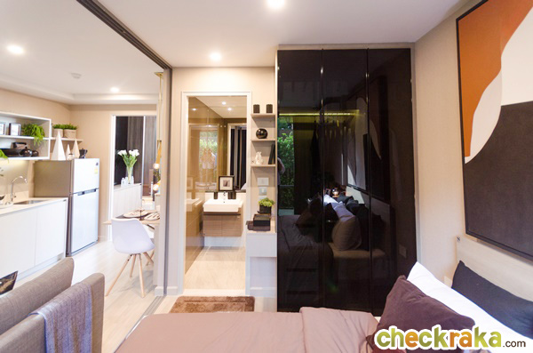 สามารถเลื่อนเปิดประตูเพื่อเชื่อมต่อห้องนอนเข้ากับห้องนั่งเล่นทำให้ห้องดูกว้างขึ้น