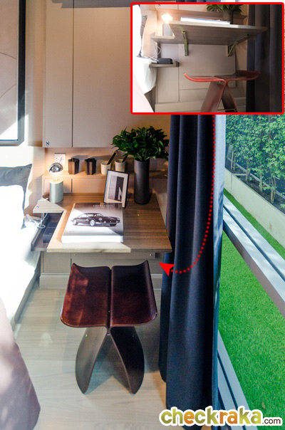 ออกแบบให้สามารถพับเก็บชิดผนังได้เวลาที่ไม่ต้องการใช้งาน ทำให้พื้นที่ตรงส่วนนี้กว้างขึ้น