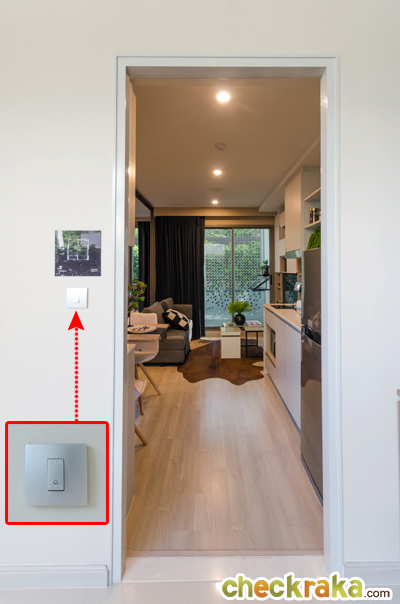 ห้องนี้ติดตั้งระบบ Smart Automation และ Sound System Controller ไว้ที่ผนังทางซ้ายก่อนเข้าห้องนอน