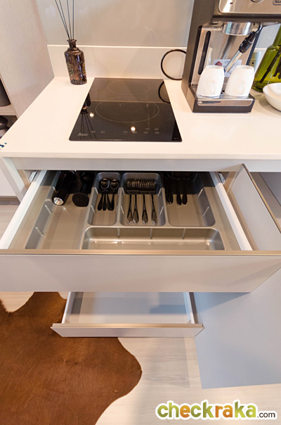 มีลิ้นชักสำหรับใส่ช้อนส้อม และอุปกรณ์ทำอาหาร