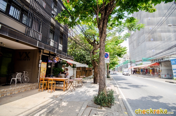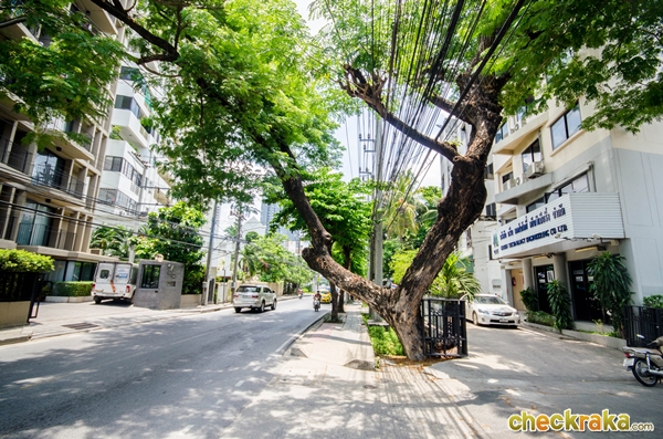 ทางเท้าค่อนข้างร่มรื่นนะคะ เพราะมีต้นไม้เล็กใหญ่ให้ร่มเงาค่ะ