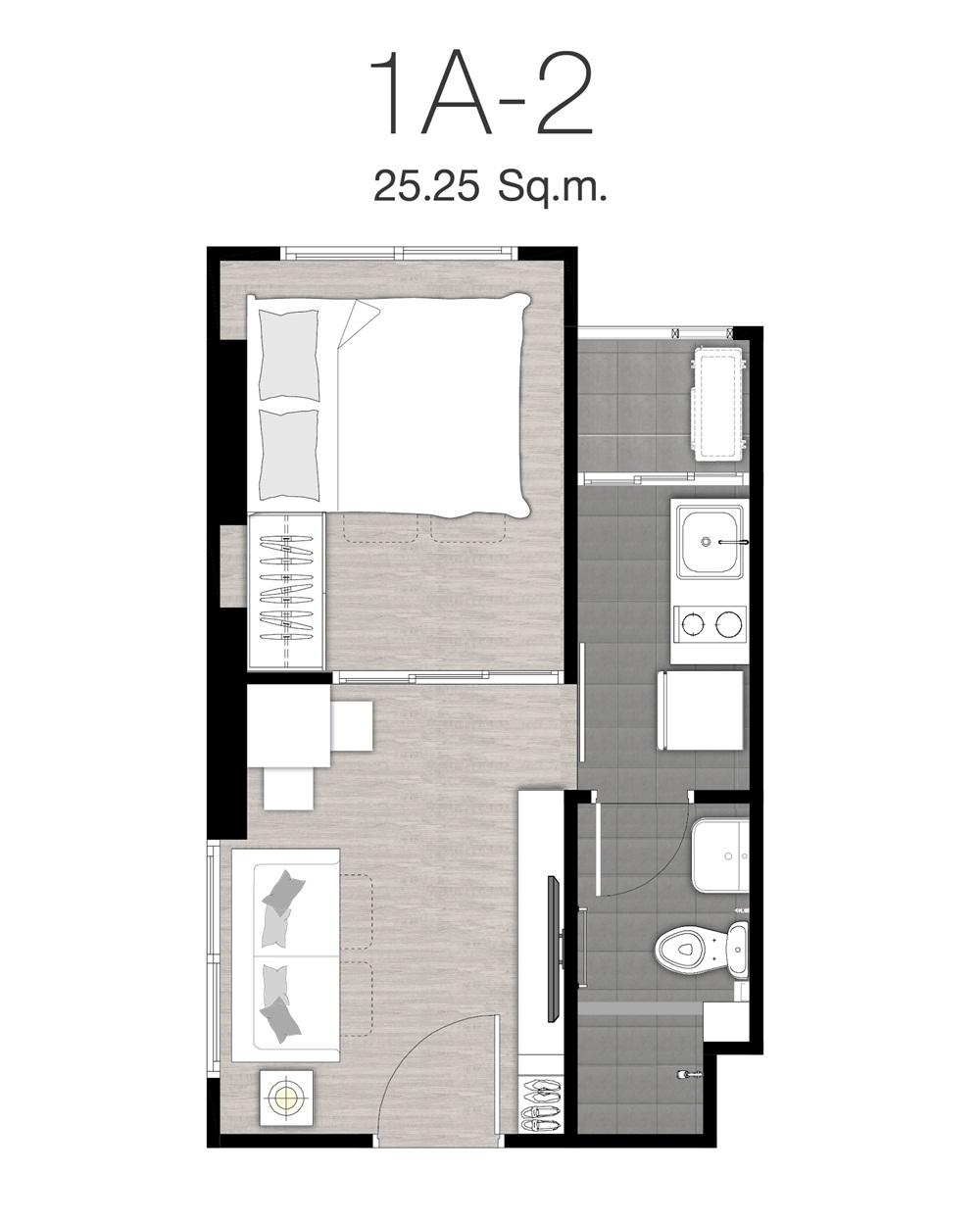 ขนาด 25.25 ตร.ม. จำนวน 11 ยูนิต ห้องแบบ 1 Bedroom ขนาด 28 ตร.ม. จำนวน 12 ยูนิต ห้องแบบ 1 ห้องนอน