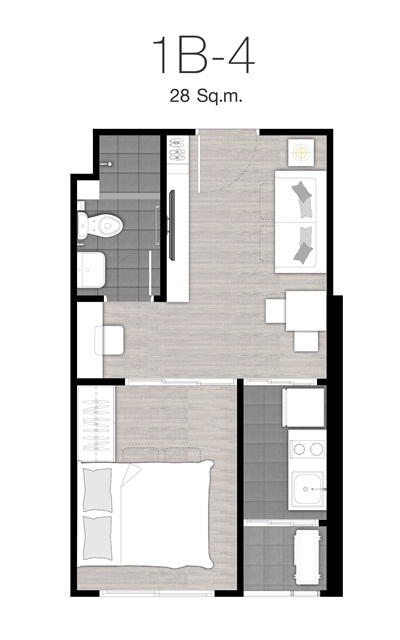 ห้องตัวอย่างแบบ 1 Bedroom ขนาด 28.00 ตร.ม.