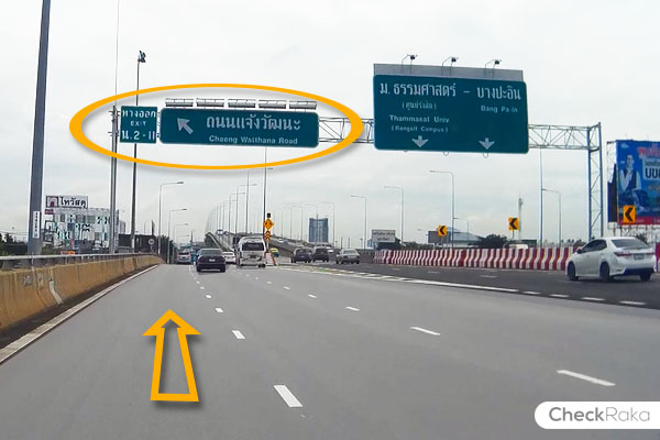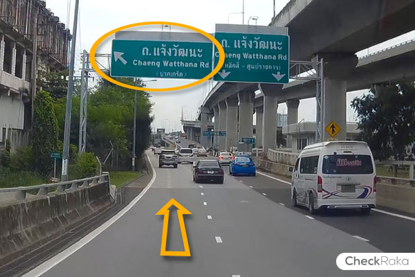 เบี่ยงซ้าย ใช้ทางออก น. 2-11 ลงถนนแจ้งวัฒนะ