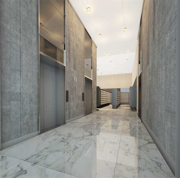 ภาพจำลองบรรยากาศบริเวณโถงลิฟต์ ที่เชื่อมต่อกับส่วนของ Mail box