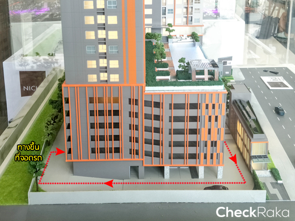 สำนักงานขาย) บนดาดฟ้าของอาคารปูด้วย Solar สำหรับผลิตไฟฟ้าเพื่อนำมาใช้ในพื้นที่ส่วนกลาง ช่วยประหยัดไฟฟ้าในเวลากลางวัน และยังเป็นการประยัดค่าส่วนกลางได้อีกด้วย การเดินรถแบบ one-way จากหน้าโครงการขับเข้ามาแล้วเลี้ยวซ้าย วิ่งวนมาเรื่อยๆ ทางขึ้นที่จอดรถจะอยู่ด้านหลังโครงการ