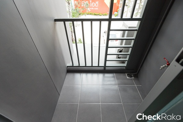 ปูพื้นด้วยกระเบื้องเซรามิกขนาด 30 x 30 ซม. สามารถวางเครื่องซักผ้าได้ที่ระเบียง