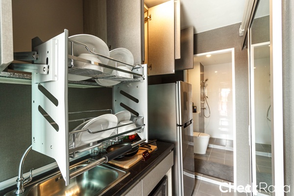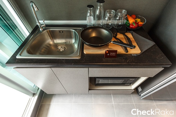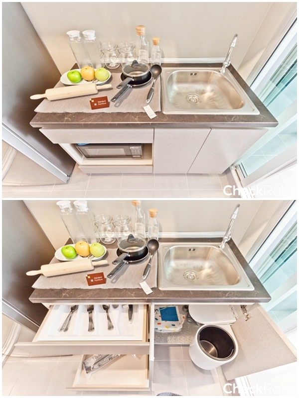 สะดวกในการใช้งาน ตู้ด้านบนไม่มีเครื่องดูดควันมาให้ เหมาะสำหรับทำครัวเบาๆ ที่กลิ่นไม่แรงมาก
