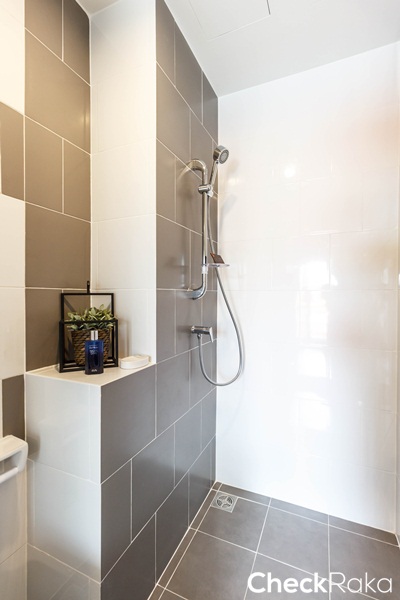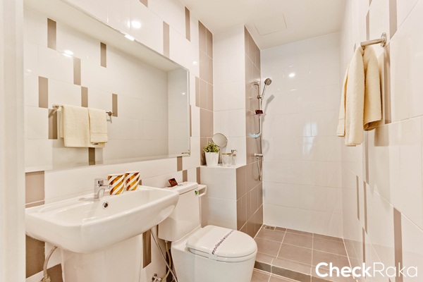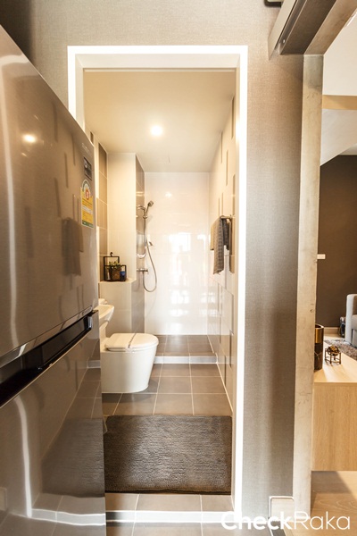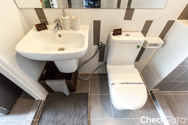 ในห้องน้ำแยกส่วนเปียก และส่วนแห้งมาให้ แต่ไม่ได้ติดฉากกั้นอาบน้ำมาให้ แนะนำให้ติดฉากกั้นอาบน้ำเพิ่ม