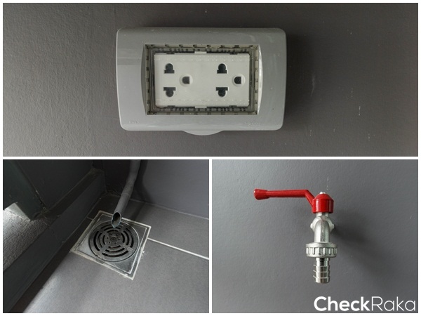 ทางโครงการติดตั้งท่อน้ำดีน้ำทิ้ง และปลั๊กไฟพร้อมฝาครอบกันน้ำมาให้เรียบร้อยพร้อมใช้งาน