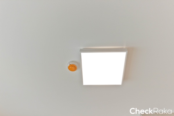 บนเพดานติดโคมไฟทรงสี่เหลี่ยมาให้ 1 ดวง