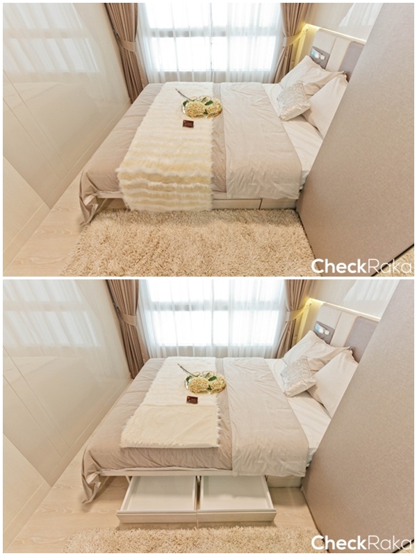 และยังมีช่องเก็บของแบบบานเปิดบริเวณใต้เตียงสำหรับเก็บของได้อีกนิดหน่อย