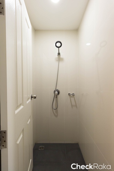 แตกต่างกันนิดเดียวตรงที่ผนังเจาะเป็นช่องมาให้ สามารถติดตั้งเป็นชั้นวางของสำหรับวางอุปกรณ์ในการอาบน้ำเพิ่มได้