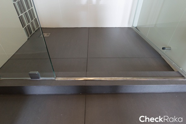 พื้นห้องน้ำปูด้วยกระเบื้องสีเทาขนาด 60 x 60 ซม.