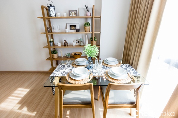 ทางโครงการจัดวางโต๊ะทานข้าวขนาด 4 ที่นั่งมาให้ดูเป็นตัวอย่าง