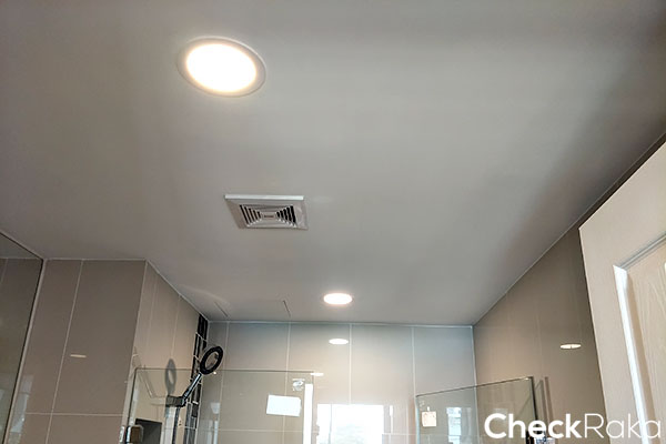 ในห้องน้ำได้ไฟดาวน์ไลท์ทรงกลม 2 ดวง พร้อมเครื่องดูดอากาศ