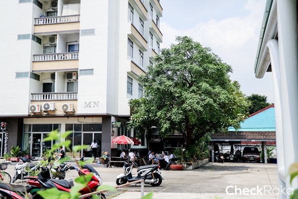 ร้านอยู่ข้างหอพัก มีต้นไม้ให้ร่มเงา ช่วงเที่ยงๆ มีคนมาทานเยอะเลย