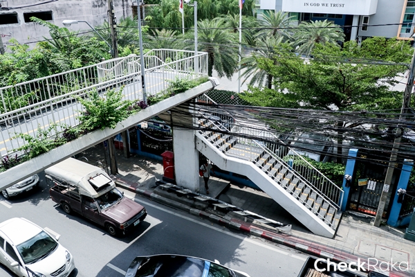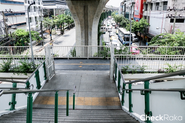 เดินทางสถานี BTS มาเจอสะพานลอยนี้เลี้ยวซ้ายลงสะพานได้เลย