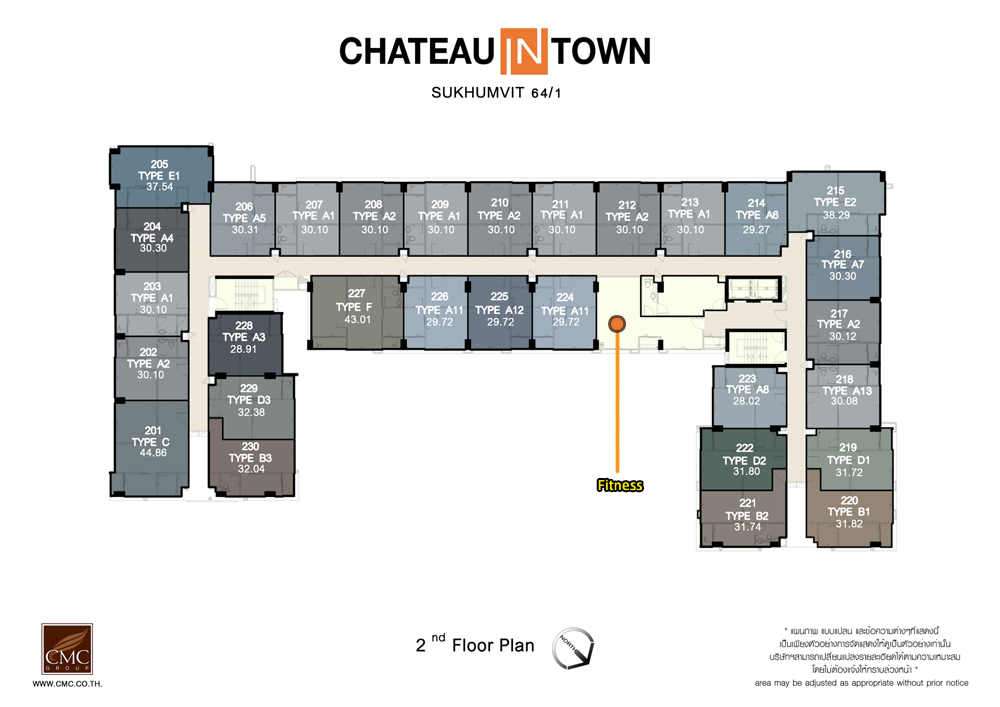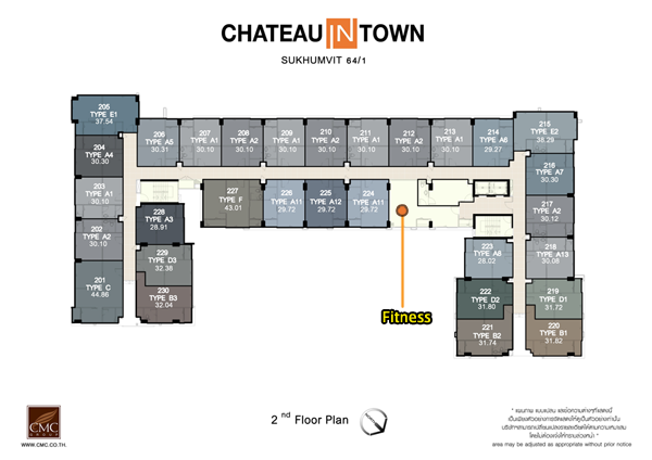 ชั้น 2 : ประกอบด้วยห้องฟิตเนส, ห้องนิติบุคคล และห้องพักอาศัยอีก 30 ยูนิต แบ่งเป็นห้อง 1 Bedroom 29 ยูนิต และห้องแบบ 2 Bedrooms อีก 1 ยูนิต ตำแหน่งบันไดหนีไฟจะอยู่บริเวณหัวและท้ายอาคาร ส่วนโถงทางเดินกว้าง 1.5 เมตร