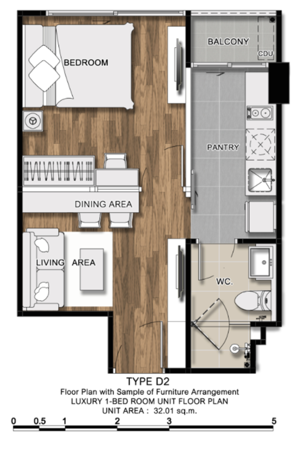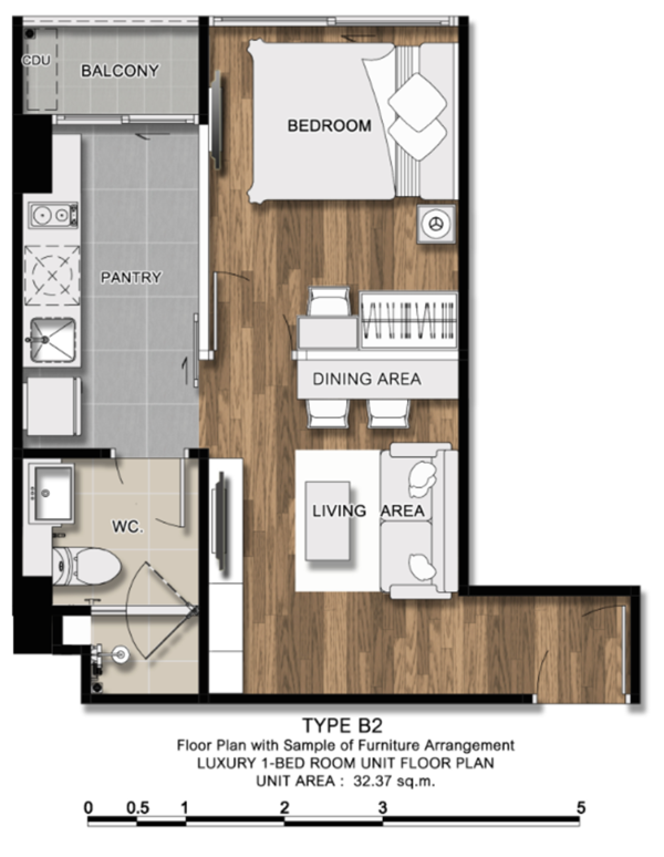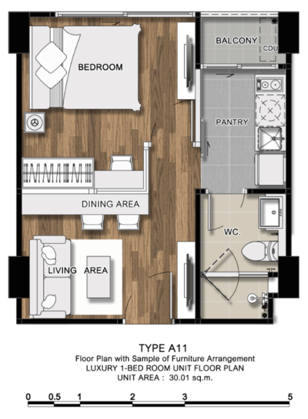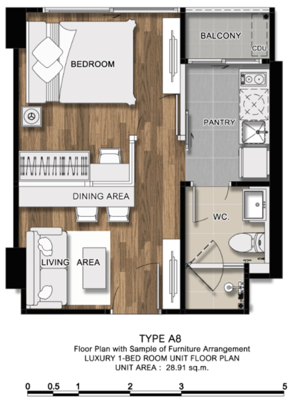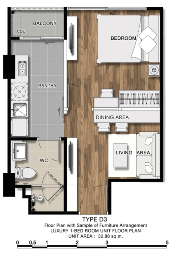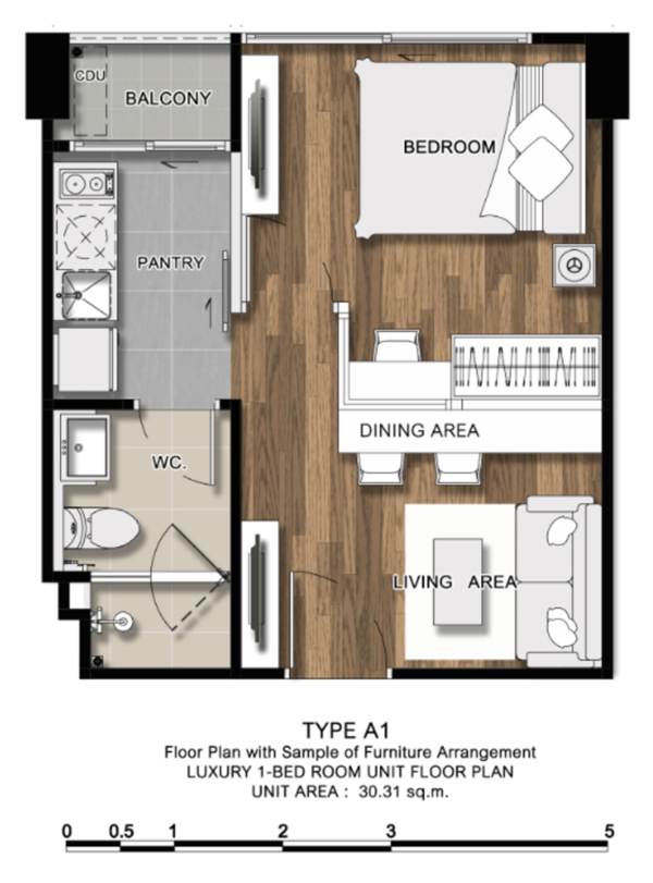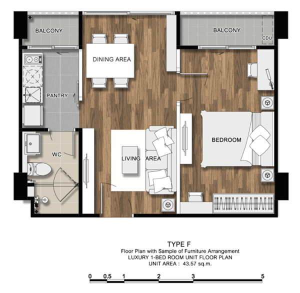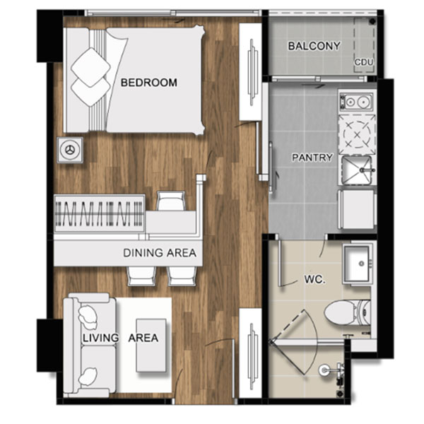 - 1 Bedroom ขนาด 28.02 - 43.01 ตร.ม.