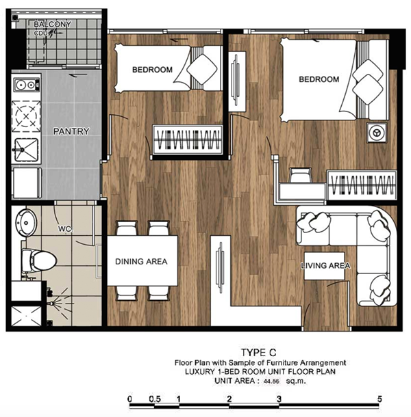 - 2 Bedrooms ขนาด 44.86 ตร.ม.