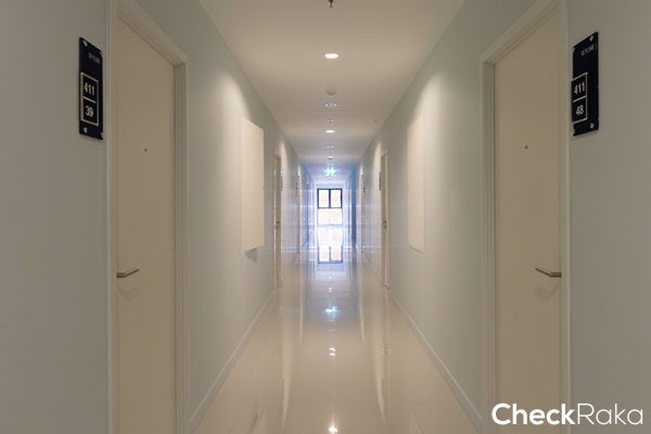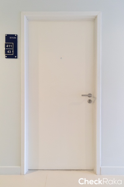 ประตูทางเข้าไปยังส่วนพักอาศัยบริเวณชั้น 6 จะอยู่ทางซ้ายมือก่อนออกไปบริเวณพื้นที่ส่วนกลาง