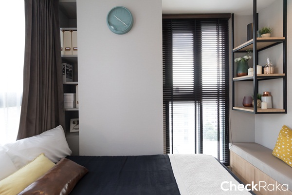 สามารถดีไซน์เป็นห้องทำงาน ห้องแต่งตัว หรือจะทำเป็นห้องนอนแบบนี้ก็ได้ วางเตียงเล็กได้ขนาด 3.5 ฟุต