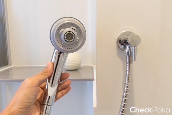 ภายในมีพื้นที่สำหรับวางผ้าขนหนู แชมพู และอุปกรณ์อาบน้ำ