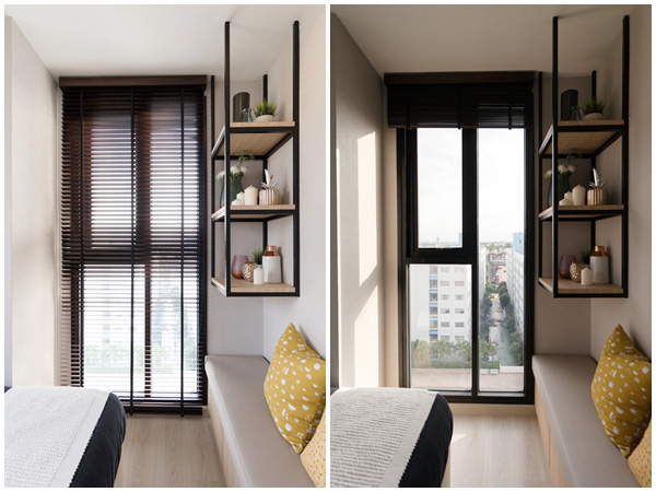 เนื่องจากห้องนี้เป็นห้องมุมเลยมีหน้าต่างถึง 2 มุม ทำให้ห้องดูโปร่ง และสว่าง