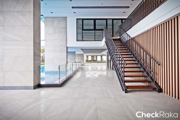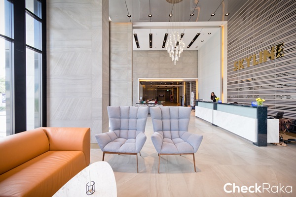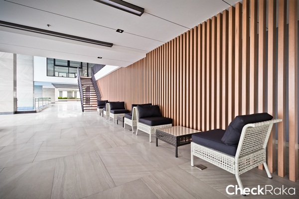 ล็อบบี้เพดานสูงแบบ Double Volume ความสูง 5 เมตร ออกแบบมาโปร่งโล่งให้ความรู้สึกเหมือนสไตล์โรงแรม