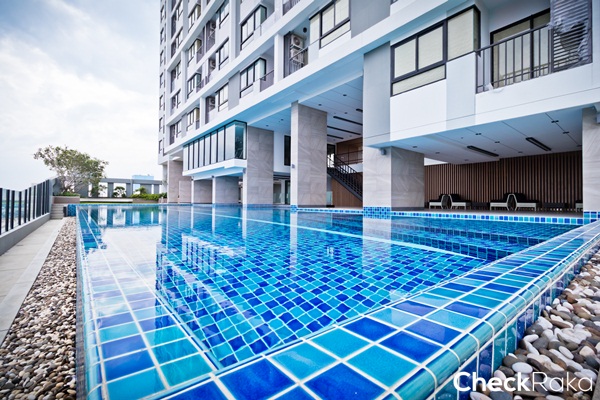 สระว่ายน้ำ infinity edge pool สามารถเทควิวเมือง และวิวรถไฟฟ้าได้แบบเต็มๆ ตา