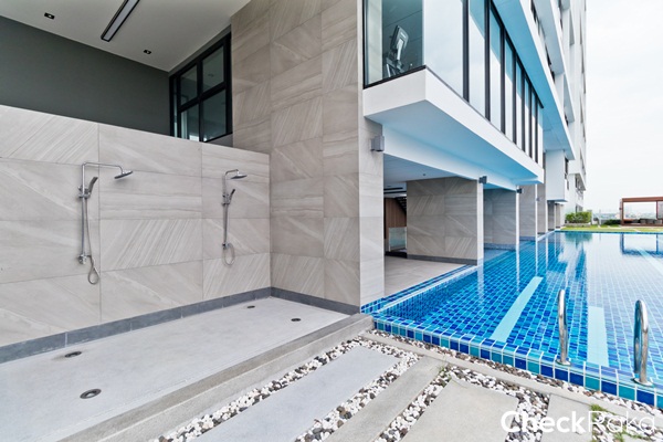 มีโซนอาบน้ำกลางแจ้งก่อนที่จะลงสระด้วยค่ะ