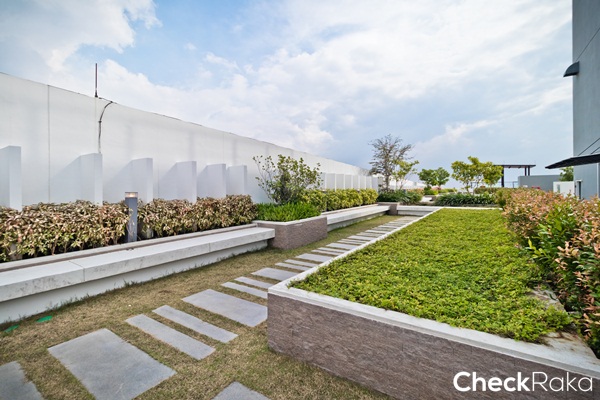 พื้นที่สันทนาการและสวนสีเขียว ส่วนพื้นที่ฝั่งขวาเป็นที่ตั้งของยูนิตพักอาศัยที่มีอยู่เพียง 9 ยูนิตเท่านั้น