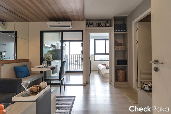 และสำหรับวันนี้เราจะพาไปชมห้องตัวอย่าง 2 Types ด้วยกัน คือแบบ 1 ห้องนอน และแบบ 2 ห้องนอนค่ะ เริ่มจาก
